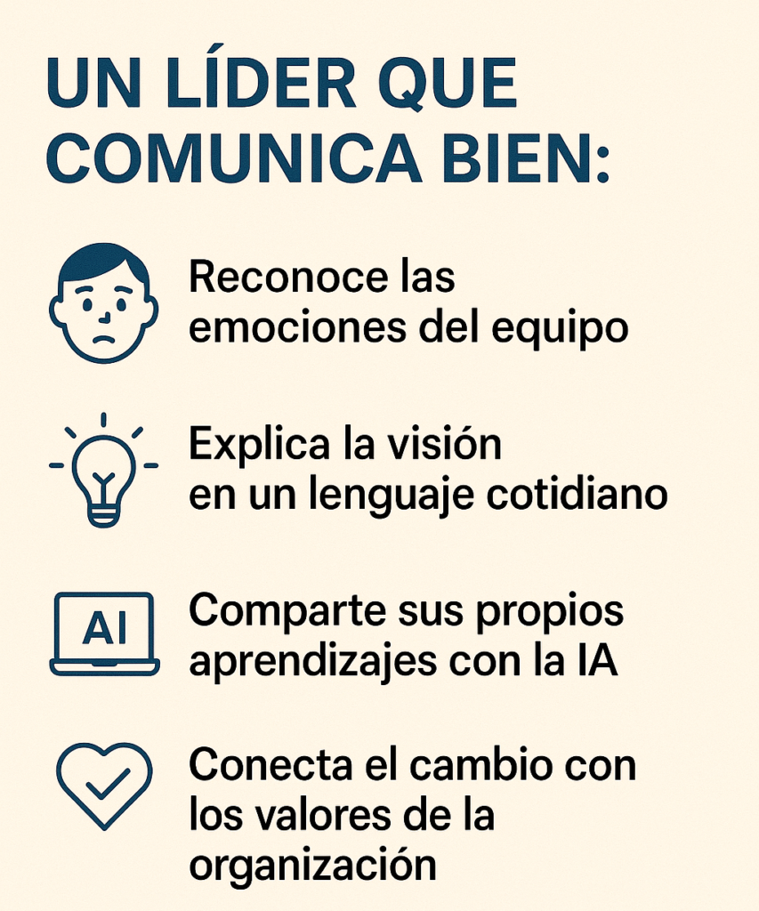 En vez de “la empresa ha decidido implementar IA”, la historia debe sonar como “nosotros estamos aprendiendo a trabajar con IA”.
