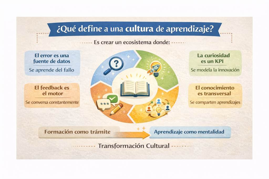 Las organizaciones que mejoran no son las que lanzan más cursos, sino las que han construido una cultura de aprendizaje continuo. En ellas, aprender no es un evento marcado en el calendario; es una forma de trabajar. La pregunta para los comités de dirección ya no es si la empresa forma a su gente, sino: ¿aprende nuestra organización como un sistema vivo?