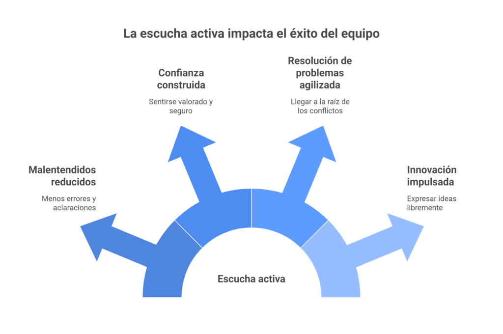 - Construye confianza: Cuando alguien se siente escuchado, también se siente valorado. Esto fomenta la seguridad psicológica, clave para equipos de alto rendimiento.