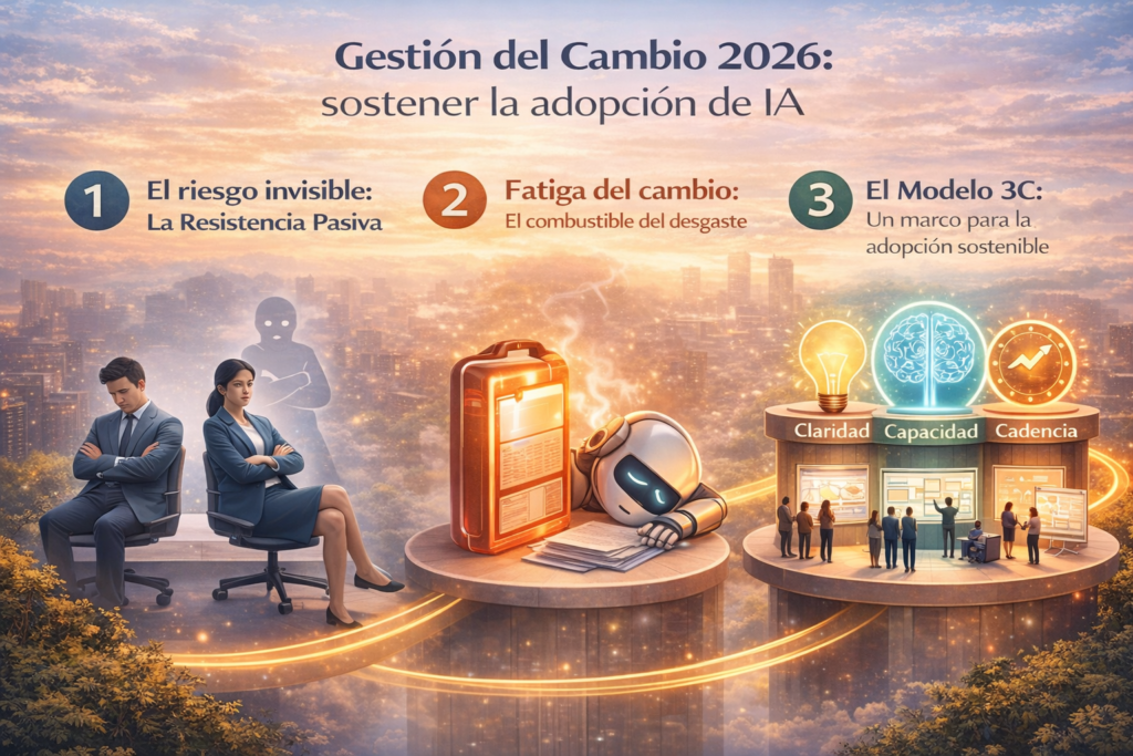 Sostener la IA en 2026 no es un desafío tecnológico; es un desafío de diseño humano. Si construyes Claridad, entrenas Capacidad y mantienes la Cadencia, la adopción deja de ser una imposición para convertirse en una ventaja competitiva sostenible.