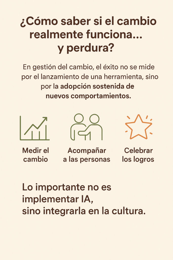 Pero hay una pregunta que toda organización debería hacerse: ¿Cómo saber si el cambio realmente funciona… y perdura?